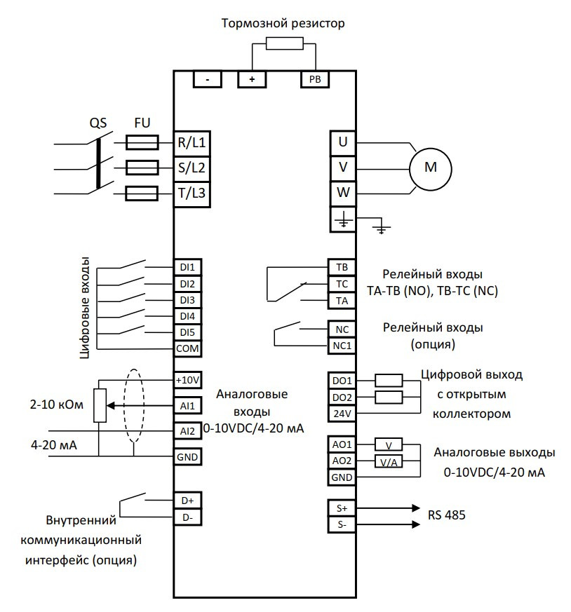 6) Встроенный тормозной модуль до 5,5 кВт включительно