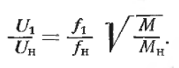Если момент вращения на валу постоянен и равен номинальному, то напряжение должно изменяться примерно в такой же мере, как и частота.